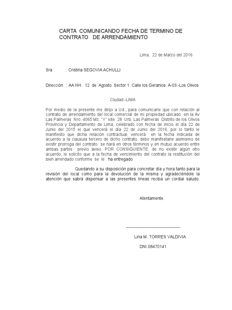 Carta Para Poner Fin Contrato De Arrendamiento Alquiler via es.scribd.com